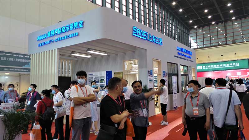 2021年5月14日至16日,在剛剛落幕的第三屆河南教育裝備博覽會(地址:鄭州國際會展中心),上海三思(展位號:A082)攜智慧校園照明整體解決方案、外觀引領潮流的展覽組合以及新穎的應用技術驚艷亮相。此外,按照1:1真實教室比例打造的AAAAA照明標準示范教室成為本次三思展廳一大看點。