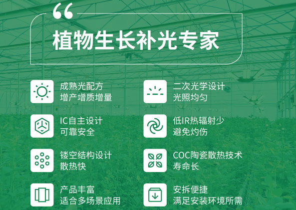 我們可以用PPFD(光合量子通量密度)評價光照強度對植物生長的影響。因此根據植物對光照強度的不同需求以及光周期現象,光周期現象是指植物能夠根據周期性,我們可以將植物分為長日照植物(陽生植物)、中日照植物(中生植物)、短日照植物(陰生植物)。更多的光照有利于這些植物健康生長;為了滿足不同植物的補光需求,給植物恰到好處的光照波長在650nm前后的紅光有助于植物進行光合作用。